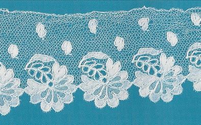 Au XVIIIème siècle apparaît la dentelle "à fond" (réseau de mailles fines sur lequel se détachent les motifs), probablement amenée par les réfugiés huguenots de Normandie après la Révocation de l'Édit de Nantes en 1685.